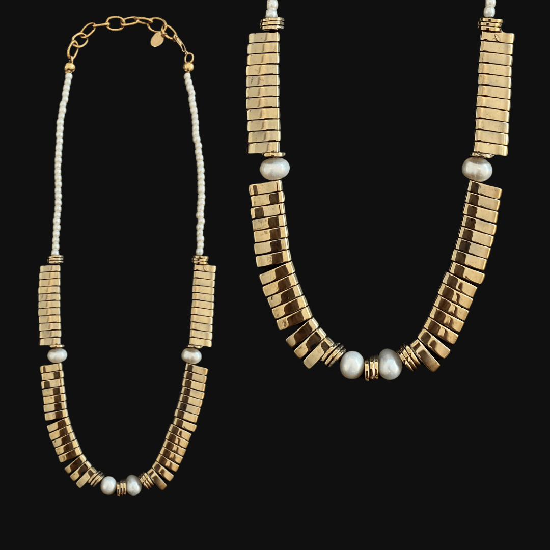 Cleopatra Hematite and Pearl Necklace Signature Gemstone Necklaces, Wholesale Jewelry