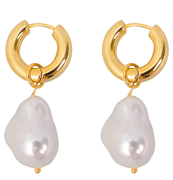 Stainless steel with three layers of 18 carat gold plating. 100% waterproof, hypoallergenic + tarnish-resistant